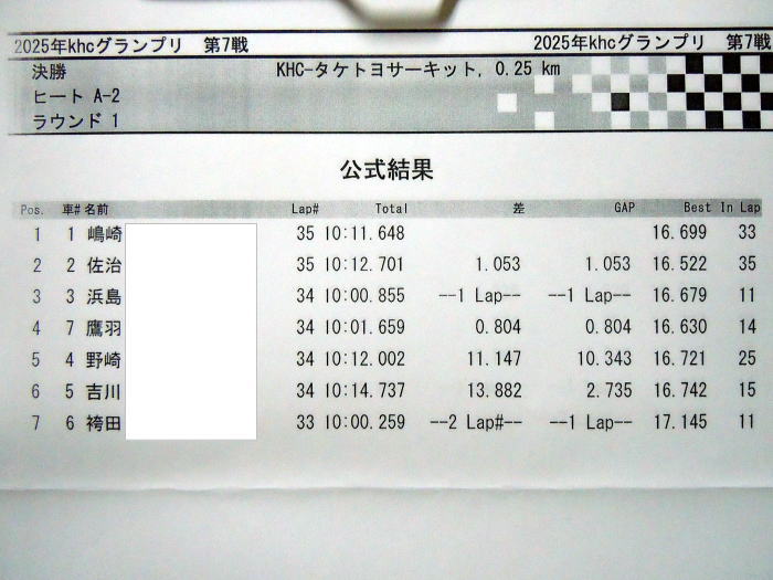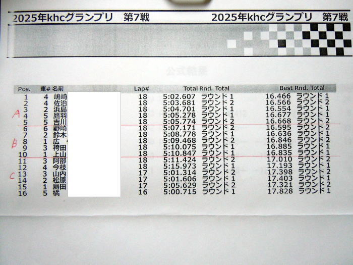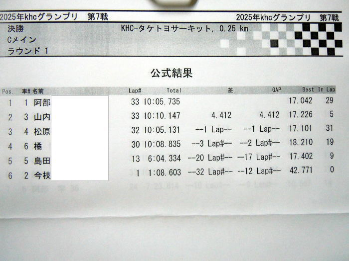 ![]() TGツーリングの予選結果 TQ島崎選手から吉川選手までがAメイン 野崎選手から上山選手までがBメイン 阿部選手から橘選手までがCメインです。 |